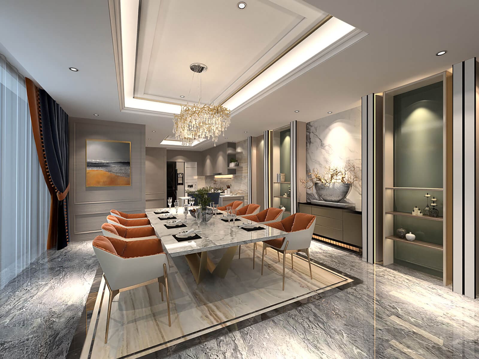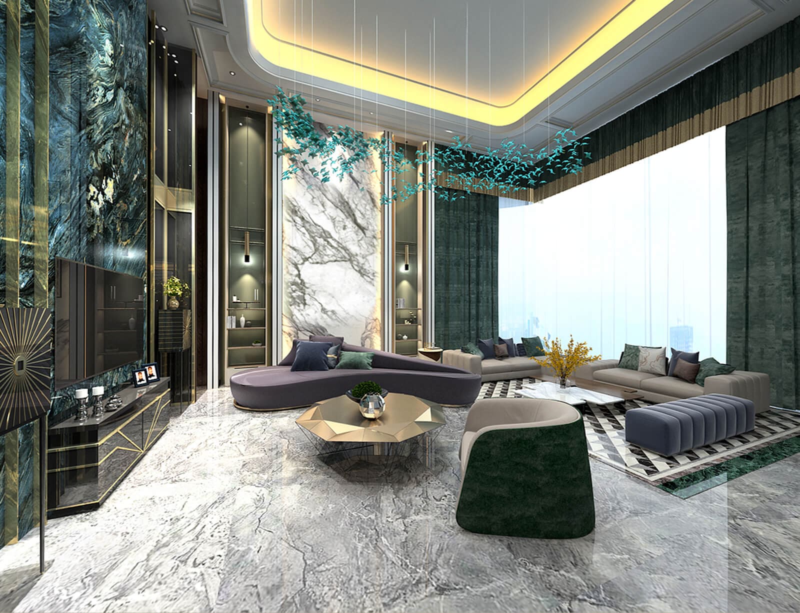 This project blurs the line between a hotel and a living space, achieving exceptional precision and luxury. Large windows emphasize broad views, while the use of diverse materials gives the space subtlety and elegance. Sequentially arranged lighting effects, paired with finely lined furniture, express the unrestrained spirit of the space, allowing free imaginative expression.