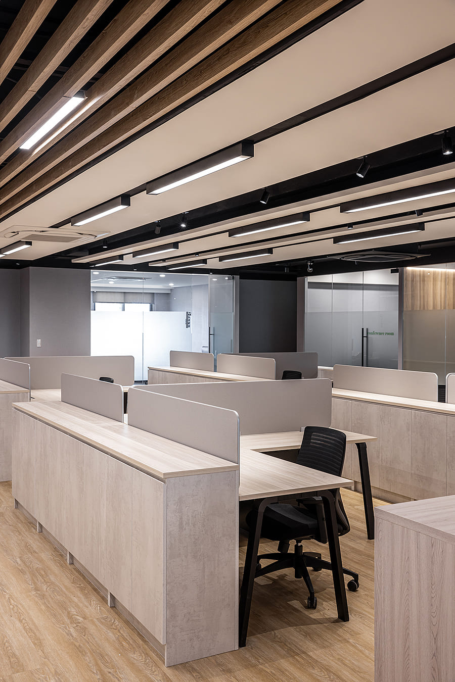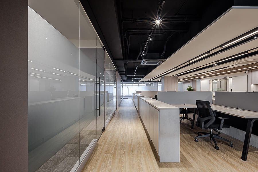 此案為位於八德區的辦公大樓,星葉設計規劃1到10樓辦公區域,從公共接待、主管辦公、員工協作、會議洽談到休憩動線,皆依據使用單位的實際需求與未來彈性發展所量身打造。設計不只著眼當下的美感與機能,更以空間作為企業文化的承載體,協助企業在環境中形塑專業感、提升內部效率與向外的品牌識別力。